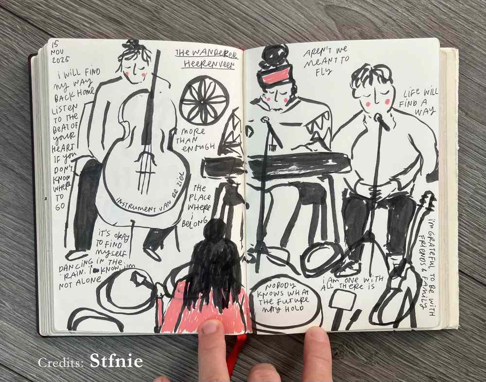 Zaterdag werd ik uitgenodigd door een vriendin van me en haar vriendin om mee te gaan naar jullie. Er is echt iets open gegaan in mij. Ben veel aan het luisteren en de songteksten aan het bekijken sinds dien. Ik vind de rust en veel erkenning in jullie liedjes en muziek.